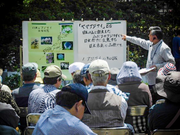 鎌倉アジサイ同好会が主催する「日本の自生アジサイ展」は、毎年5月末の一週間、大船のフラワーセンターで行われ、約6,000人以上が来場する。期間中は全会員が当番で案内と展示の説明を行うが、川島が居ると会員の安心感が違う。中にはかなり専門的で難しい質問をされる方もおられる。困ったときの川島頼みである。
