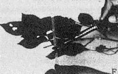この道具を用いて標本を貼付けるのは至極簡単である。前記のテープをラミネート面を下にして台紙上に置き、鏝で軽くなでれば即座に熔着される(図F)。テープを必要な長さに前以って切っておく必要はない。鏝を平に当てたままテープを捻り気味に引張れば簡単に切ることができる(図G)。この点は従来の紙テープと違って大変便利である。テープが薄いので、切口がささくれていても全く気にならず、また葉や花の上にかかるテープも同じ理由であまり邪魔には感じられない。