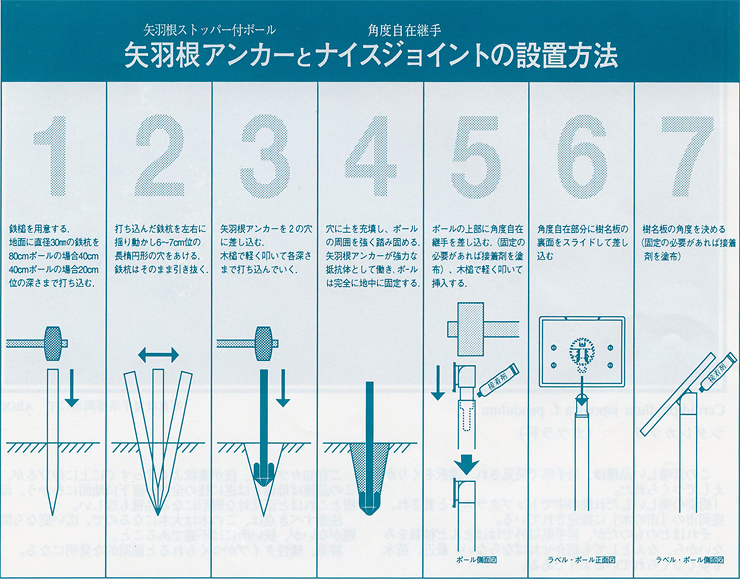 矢羽根アンカー(矢羽根ストッパー付ポール)とナイスジョイント(角度自在継手)の設置方法